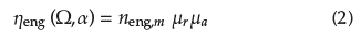 The efficiency map in Equation (2) is described by Ben-Chaim, Shmerling, and Kuperman (2013), and it reports engine efficiency (neng) based on the engine's maximum efficiency (neng,m), as well as considering factors related to engine speed (μr) and throttle usage (μa). A detailed explanation regarding the integration of both models can be found in Andrade, Araujo, Santos, and Magnani (2020).
