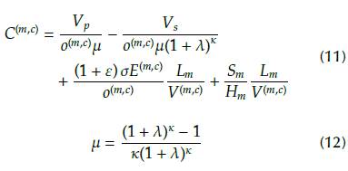 Table 3 lists the Brazilian financial parameters employed in the calculation of monthly costs, C(m,c) (US$/occupant month), Equation (11). In this Equation, the first term on the right-hand side represents the monthly value relative to the vehicle acquisition, Vp. To compare monthly equivalent values, the corrected number of months μ is employed, which is calculated by Equation (12) (Stoecker, 1989) and considers the monthly interest rate A and the number of financed months k used in the analysis. The second term of Equation (11) represents the monthly equivalent of the reselling value of the vehicle, Vs. The third term calculates the operational cost with fuel, considering a fuel tariff a (US$/J), the monthly traveled distance Lm, and a factor ε to consider taxes, maintenance, and parking. The last term considers time lost in traffic, while taking the monthly wage Sm into account, which the occupant earns for working Hm hours.