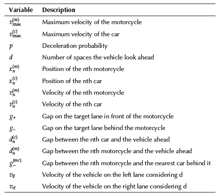 The traffic simulation has five steps, similar to the one proposed by Meng et al. (2007). Those steps are proposed both to manage the lateral and longitudinal movement and to provide safety for the vehicles, avoiding collisions. Table 2 lists the parameters and variables employed during the procedure.