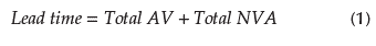 The lead time is calculated by identifying AV and NVA activities. A single calculation is made to estimate the corresponding lead time.