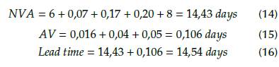 SST = 6 days, CST = 8 days, NVA1= 0,07 days, NVA2= 0,17 days, NVA3= 0,20 days
