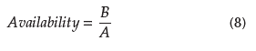 Availability: the proportion of run time (B) between total operative mode time (A).
