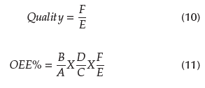 Quality: the proportion of actual good products (F) versus product output (E).