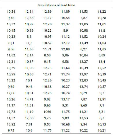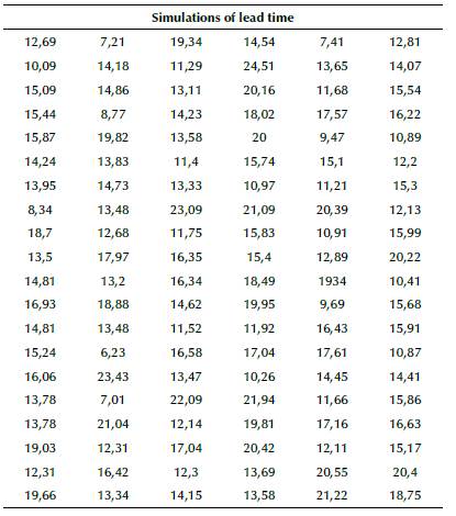 The central limit theorem describes the distribution of the mean of a random sample from a population with finite variance. When the sample size is large enough, the distribution of means flows approximately normal. The proposed approach uses a sample of 120 simulations, large enough to estimate the expected value of reliable lead time. Table 2 shows the results of 120 runs in a simulation of the proposed approach DFVSM, support to give the estimate of the expected delivery time of 15,05 days.