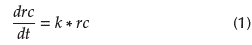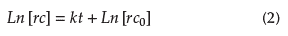 Where, rc is the concentration of RC, k is the first order kinetic constant, and t is time. Additionally, the solution of the linearized Equation (1), where k is the slope, is described using Equation (2):