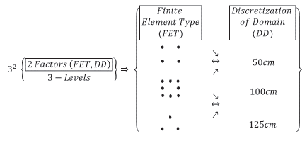 From the preparation of the mathematical model of this paper, two important variables were defined: the type of finite element (TFE) and the optimal discretization of domain (DD).