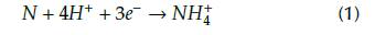 Other authors (Anandan et al., 2007; Muthukumaran et al., 2010; Padhy et al., 2010) have proposed a different approach to the effect of implanted nitrogen on electrochemical behavior. Implanted nitrogen favors the formation of ammonium ions (Equation (1)) which eventually increase the local pH at active sites on the surface, such as grain boundaries and kinks, where passive film formation is chiefly unstable. As a result, the production of ammonium, together with further nitrite or nitrate ions through the electrolyte, impedes the reduction of pH, thus shifting the Ecorr to more positive values (Fossati et al., 2006).
