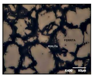 The micrograph of the structure is illustrated in Figure 1, which is agrees with the typical microstructure of the martensitic stainless steel (AISI 420 SS) supplied in annealed conditions. It consists mainly of ferrite, together with perlite grains dispersed with small colonies of carbides precipitated at the grain boundaries (Nunura and Lecaros, 2015; Voort et al., 2004).