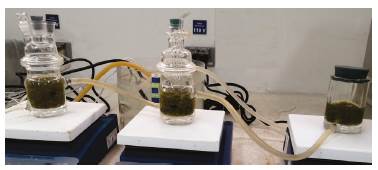 The amount of fresh and dry vegetal material that entered the reactors at each stage of the process was 2 g. Each time that fresh solvent was added, it was done in amounts of 40 g. The tests were carried out at room temperature in the city of Bogotá (19 °C) and at 40 °C. The latter was established in order not to move too far from room temperature (it can be 30 °C in the department of Cauca) and stay distant from the normal boiling point of ethanol.