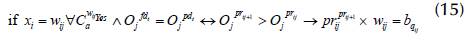 The fitness function (Ffitness) first penalizes every C that is not feasible to the OBS by assigning a negative value equal to the bqij of the invalid bit, in which ∀sij = 1 according to the following conditions: If sij = 1 and xi = 0: penalty Pex is imposed according to Equation (17).