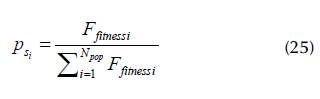 The roulette wheel by Holland (1975), linked to Elitism (E) by De Jong (1988), is used as a selection technique, in which only the best C (CElite) of each Nger is transferred to become the first C of Nger+1 . The selection probability of each individual is equivalent to a certain slice of the roulette wheel, as expressed by Equation (25).