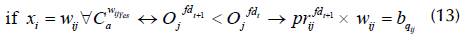 2. The sij = 1 must prioritize the first fdij in the POP: If xi < Qi, fdt is preferred over fdt+1 ; otherwise, penalty Pefd is imposed according to Equation (19).