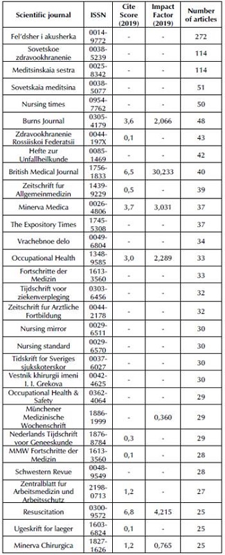 The main journals, according to the quantities of published articles on first aid, are listed in Table 2.
