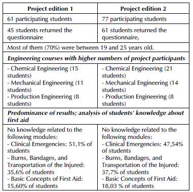 In the next subsection, the results of a project developed in a Brazilian public university about teaching first aid practices will be presented.