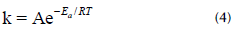 where A is the pre-exponential factor, Ea is the activation energy, R is the ideal gas constant, and T is the temperature.