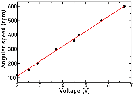 The angular velocity of the agitator was controlled by the voltage applied to the motor and measured using a tachometer with an accuracy of 0,1 rpm. The motor calibration curve is shown in Figure 4, which evidences a direct relation between the voltage applied to the motor and the rotational speed. The results were very similar for the different agitators coupled to the motor because all of them have a small moment of inertia. Numerical values of the calibration curve can be consulted in the Supplementary Information section.
