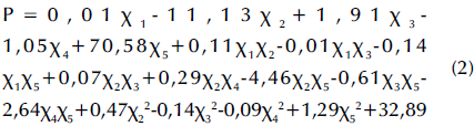 where P is the sludge dissolution rate, x1 is the reaction temperature, x2 is the solution pH value, x3 is the reaction time, x4 is the potassium ferrate dosage, and x5 is the agitation condition (0 for no stirring or 1 for stirring). An F-value of 3,16 with a p-value (Prob>F, less than 0,5) was obtained from the statistical test using the aforementioned model, which indicates a nonlinear relationship between the four factors and a significant difference among them. Said factors had a significant effect on the residual sludge dissolution rate, and there was some interaction between them. The R2 value regarding the fit of the regression model was 0,72, which was acceptable. The signal ratio was represented via Adeq Precision, which could be used for simulation purposes when it is greater than 4. In this study, Adeq Precision showed a value of 7,20, which was large enough to simulate the design.