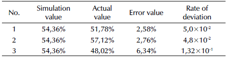 Three repetitive experiments were conducted at 21,58 °C as well as with a pH = 4, a potassium ferrate dose of 1 mg/g SS, a reaction time of 4,07 h, and stirring, which are the optimal conditions given by the mathematical model. The obtained residual sludge cell dissolution rates were 52,78, 55,12, and 51,02%, which is listed in Table 3. The results showed a standard deviation of 2,06 and were very close to the 54,36% predicted by the software. Therefore, the reliability of this model was as expected, and the fitting diagram of the predicted values vs. the actual ones is shown in Figure 7b. According to Table 3, the real value under the best experimental conditions was very close to the simulation value obtained by the software, with a low error rate, thus indicating the reliability of the model.