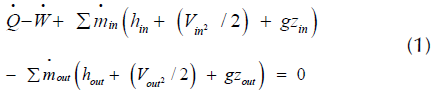 For the energy analysis, a control volume was considered, which covered the centrifugal pump driven by a diesel engine with input and output mass (Macedo, 2013; Silva, 2014). The energy balance applied to a process for control volume (steady state flow process) was used, as shown in Equation (1):