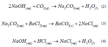 The CO2 that evolved during the incubation test was quantified by mixing 2 mL of NaOH from each sample with 5 mL of barium chloride BaCl2 0,5 M. The NaOH that did not react to the CO2 was titrated with hydrochloric acid (HCl) 0,5N (Equations (2)-(4)).