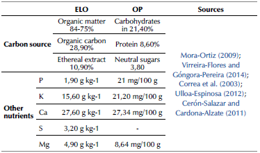 Microbial characterization of the plant-based materials was performed in order to identify native microorganisms in each bioadsorbent and establish whether they contained microbial strains resistant to Pb (II) and Cr (III). The microorganism concentration in OP and ELO was quantified using the plate count method. Macroscopic morphological characterization (morphotypes) was based on the shape and color of the colony. Subsequently, a test of the microorganisms' resistance to metals in the bioadsorbents over time was done. In this assay, a Pb (II) and Cr (III) solution at 450 mg/L was added to OP and ELO. After 2, 600, and 1 104 hours of contact between the bioadsorbents and metallic ions, the microbial concentration was determined using serial dilutions (from 1x10-2 to 1x10-6) and cultures via the plate spread method. Bacteria and fungi were isolated with nutrient agar (NA) (Ben-David and Davidson, 2014) and Sabouraud agar or potato dextrose agar (PDA), respectively. Cultured agars were incubated at 30±1 °C for 24 hours for bacteria and at 25 °C for 3 to 5 days for fungi. All tests were performed in duplicate.
