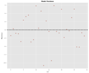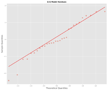 Figure 4 reports the accuracy and ecision of the model, and it identifies the type of bias in it. Figure 5 demonstrates that the residuals follow a random pattern, i.e., no trend and no non-constant variance. Figure 6 shows that the residuals fit a normal distribution, i.e.,Figures 5 and 6 confirm that the ordinary least-squares assumptions are valid for the model.