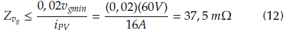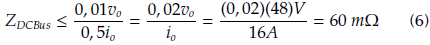 Here, ω0 corresponds to the bus voltage loop cutoff frequency, where a small ESR value is obtained. A parallel capacitor array was proposed in order to obtain a capacity of 2,35 mF, with a series resistance of 11,8 mΩ. In addition, voltage regulation in the DC bus is performed by the voltage control loop shown in Figure (Figure 4).