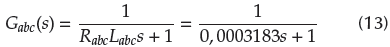 A series RL first-order low-pass filter is required to eliminate the transmission line current ripple. Its transfer function is presented in Equation (13). These parameters correspond to Rabc and Labc .