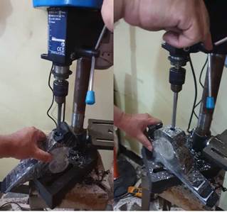 The processes related to manufacturing the below-knee prosthetic limb were performed while using various metal cutting machines for turning, milling, sawing, and drilling, as well as for thread tapping and welding. This, in addition to manual work such as filing and polishing, etc. (Figure 6).