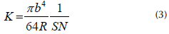 where R is the radius of the sphere and b is the diameter of the crater generated during the test. Once the wear volume has been determined, the Archard relation is used, which relates the wear volume to the normal load N and the sliding distance S: