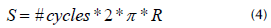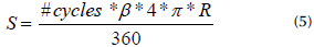 To calculate the sliding distance S for a continuous rotation of the system, the following relation is used: