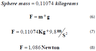 Replacing the values of the sphere force and the distance differential Ax expressed in meters yields: