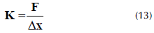 The spring recoil is approximately 14 mm, which is equal to the Ax that the spring must have when it compresses the sphere. From the above, by Hooke's law,