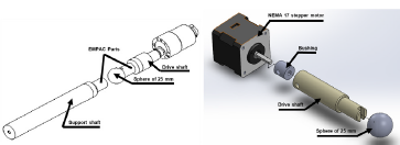 The implementation of the stepper motor (Figure 11 ) was the most representative change made to the system, which allows controlling the position of the sphere, its velocity, and the direction of its rotation. In this case, the system was tested while considering hip joint replacements as reference.