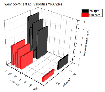 Finally, with the tests performed, there is a tendency indicating that, as the contact angle of the sphere decreases for reciprocating tests, the wear coefficient increases.