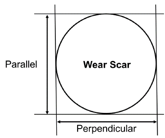This article presents different mathematical models that allow relating the dimensions of the tracks obtained during testing with a rate of volume loss and a constant wear rate. Therefore, after each test performed, parallel and perpendicular measurements of each track were taken (Figure 2), and an average of these measurements was calculated, since, for each study case, two tests were performed in order to obtain reliable diameter values.