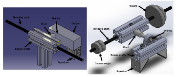 Figure 9 shows how the rigid support that contained the bearing that in turn supported the pivot connected to the counterweight system was replaced by a square profile tube on which a bearing rests, thus allowing the system to move horizontally as needed.