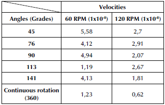 For joint replacements, there is a normal load of approximately 70 or 80 Newtons that falls between the femoral area and the tibial or acetabular component (Cañizo et al., 2010). In all tests, a constant load of 2 Newtons was applied to maintain this parameter controlled, while varying other parameters such as the angles of travel of the sphere and the velocity. These values were chosen to closely resemble those observed in a real environment.