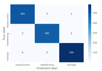 Eyiokur et al. (2021) studied three-class face mask detection and obtained a higher accuracy with an Inception- v3 network (i.e.,98,2%).