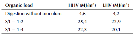 Thus, the testing of the samples of Mitú, whose volatile solids ratio was 1:4, presented the greatest HHV, while in Sibundoy samples the best relation obtained was 1:2. This is because the estimated heating values depend directly on the concentration of methane.