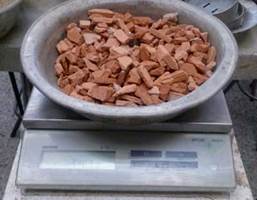 The amount of cement and the amount of water for all the mixtures was kept fixed and partial replacements of coarse aggregate were made by the two lightweight aggregates previously described. For these replacements, the average density between the stone aggregate and the lightweight aggregate was calculated, in order to find the necessary quantities of each one. For each of the mixtures evaluated, the lightweight aggregates were pre-moistened for 24 hours prior to the preparation of the mixture. Due to this pre-moistened, the incorporated water was discounted from the calculated mix of water.