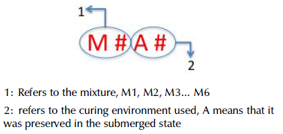 In order to evaluate the performance of the concretes, it was necessary to make twin specimens of each mixture. Half of these were preserved in submerged state and the other half were conserved in a room with controlled temperature and humidity at 55 %, and constant temperature of 25 °C. These conditions were hold until the core extraction and test age.