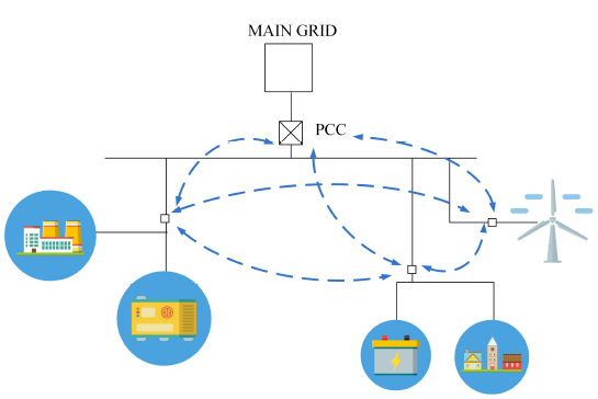 On the other hand, the decentralized scheme consists on agents (software and hardware) distributed along the equipments in the MG. These agents communicate to each other and interact without a central or global unit, transmitting and analyzing data in a more simple and fast way, as illustrated by Figure 5. Even by dividing the electrical network into zones of operation, agents can establish a more accurate control and protection, this is another application of decentralized schemes that allows to locate and isolate faults in a more effective way (Alwala, Feliachi, & Choudhry, 2012; Brahma & Girgis, 2004; McArthur et al., 2007; Moradi, Razini, & Mahdi Hosseinian, 2016).