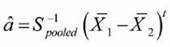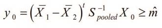 That is S1 variance-covariance matrix of the first society and S2 variance matrix - covariance of the second society. Also, X 1 is the mean vector P of the first society and X 2 is the vector of the mean P of the variable of the second society. X 0 belongs to the first society if:
