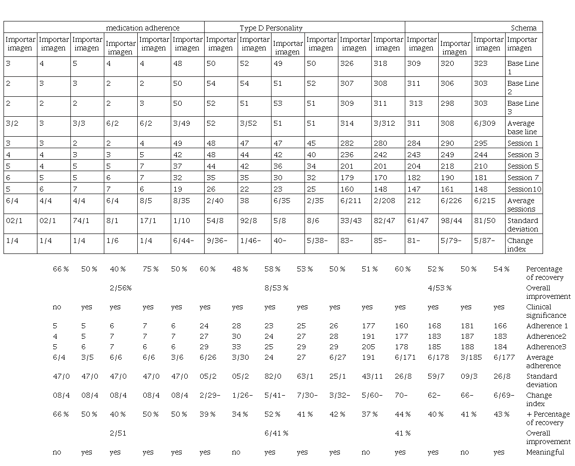 Palabras clave: Terapia de Esquema, Tipo de personalidad D, Memoria de trabajo, Memoria prospectiva, adherencia a la medicación.