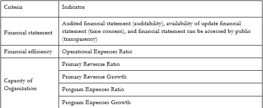Assessment of organizational capacity is measured through four criteria. The results of the financial performance measurement of this organizational capacity component as a whole are summed up quite well.