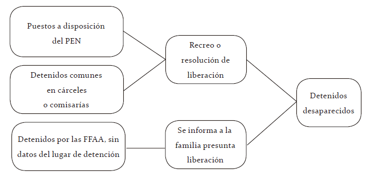 Los esfuerzos iniciales de las organizaciones respondían a una metodología de acopio y enumeración por medio de listas con miles de nombres que publicaban como solicitadas en los periódicos. Otro recurso había sido la presentación de habeas corpus colectivos para obtener pronunciamientos de la Corte Suprema de Justicia sobre las desapariciones. Estas iniciativas tampoco contaron con una sistematización de los casos presentados, sino más bien con una enumeración de hechos delictivos.