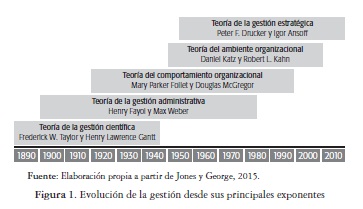 Aunque las tareas y responsabilidades de la gestión han cambiado radicalmente en los últimos años debido a las transformaciones generadas por la competencia global y los adelantos en la nuevas tecnologías, la administración contemporánea considera que "la gestión implica planear, organizar, dirigir y controlar el talento humano y de otro tipo para alcanzar con eficiencia y eficacia las metas de una entidad" (Jones y George, 2014, p. 5); un concepto a su vez, derivado del modelo de administración básico de la teoría de la gestión administrativa determinada por Fayol, que aunque fue establecido a comienzos del siglo XX aún es reconocido por autores como Tom Peters (2003), como guía y principio de las teorías e investigaciones recientes en el área administrativa.