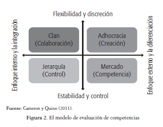 En la cultura organizacional se reflejan diferentes características acerca de las empresas: el estilo de administración, el liderazgo, los planes estratégicos, sistemas de recompensa, el clima organizacional, los valores básicos, entre otros muchos aspectos. De ahí la importancia de revisar el Modelo de Evaluación de Competencias (The Competing Values Framework) de Cameron y Quinn, ya que a través de este se pueden conocer los indicadores de eficacia que tiene una organización.