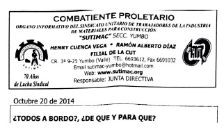 En el encabezado del boletín se observa un título que corresponde con el nombre del mismo: Combatiente proletario. El nombre alude a una retórica y significación propia de los sindicatos tradicionalmente de corte mar-xista, connota el combate, es decir, la lucha permanente del proletariado, esto es la clase obrera, frente a los embates de las empresas como expresiones máximas del capitalismo.